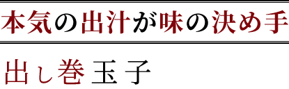 - 当店の出し巻玉子をまだ食べたことが無い方は、ぜひこの機会にお召し上がりください!化学調味料を一切使用せず、一から引いた昆布と鰹の出汁。その旨味たっぷりの出汁を含ますように巻き上げた玉子焼きは、見た目にも美しく、その美味しさも格別です。